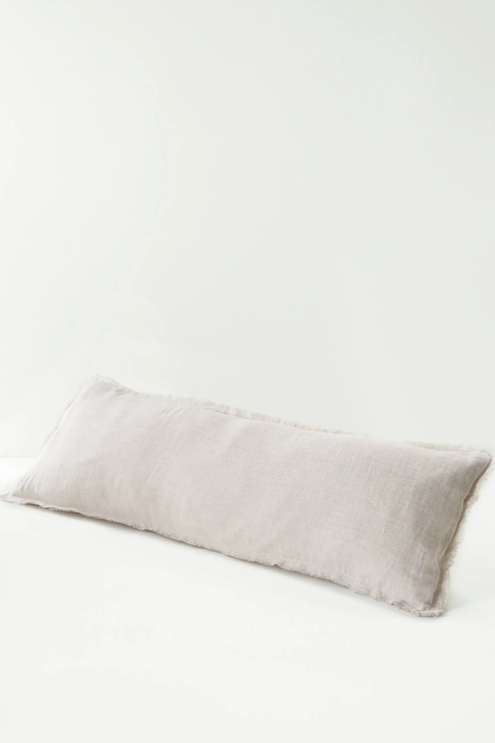 Adding different dimensions to your bed creates a plush, inviting space. This long bolster pillow looks amazing and is a great snuggle in airy, 100% linen. Petite eyelash fringe accents the ends for a chic touch. Cover is removable and washable.